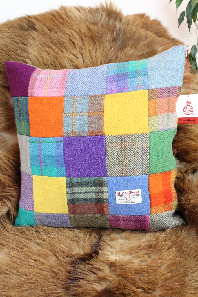 Add a touch of classic Scottish charm to your home with this double-sided Harris Tweed® tartan cushion cover, handwoven in the Outer Hebrides of Scotland using 100% pure virgin wool Beautifully hand crafted genuine Harris Tweed cushion cover with patchwork pattern and randomly chosen tartan backing.